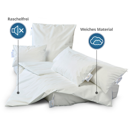 Damit der Schutz vollständig ist, muss das gesamte Bett mit passenden Schutzbezügen ausgestattet werden. Milben und Allergene befinden sich nicht nur in der Bettdecke, sondern auch in Kissen und Matratze. Für einen lückenlosen Schutz empfehlen wir: