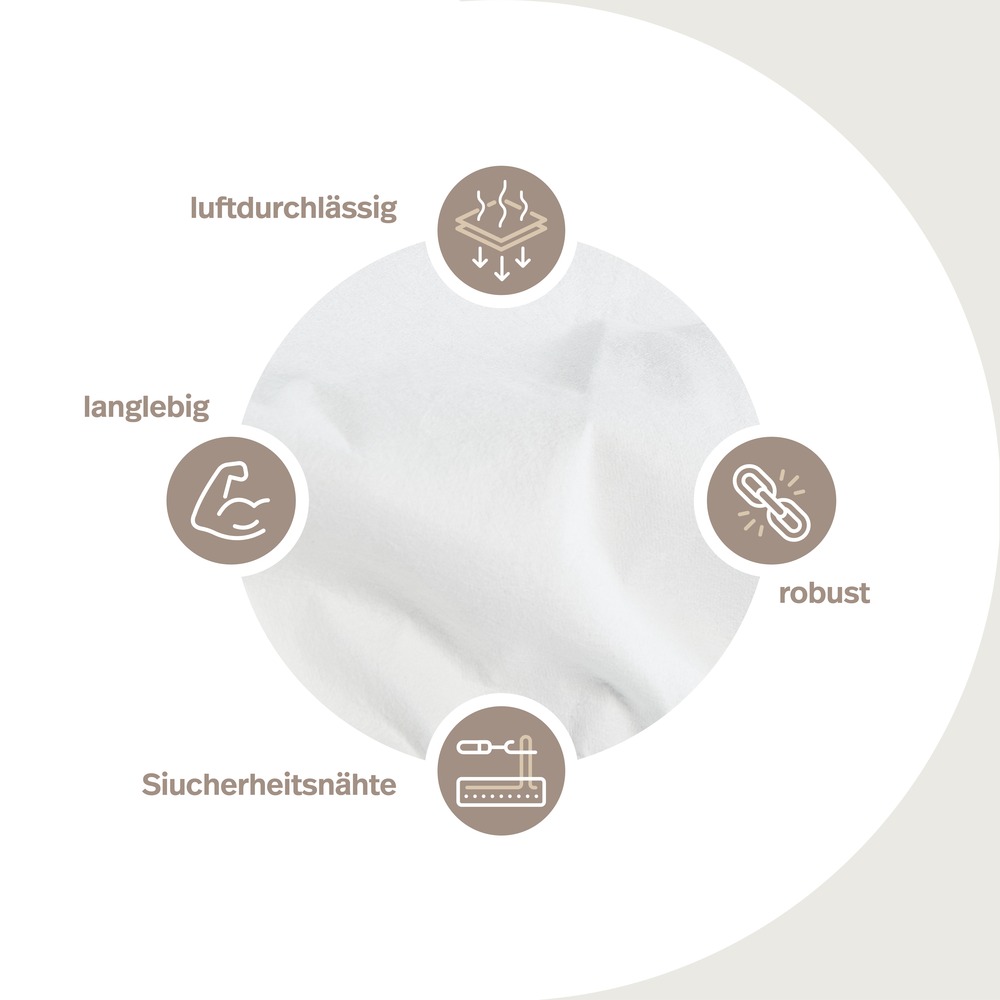 | Produkt-Vorteile: | allergen- und hausstaubmilbendicht atmungsaktiv einfache Handhabung faltenfreier Sitz geräuscharm gute Luftdurchlässigkeit gute Luftzirkulation hautsympathisch hervorrage |