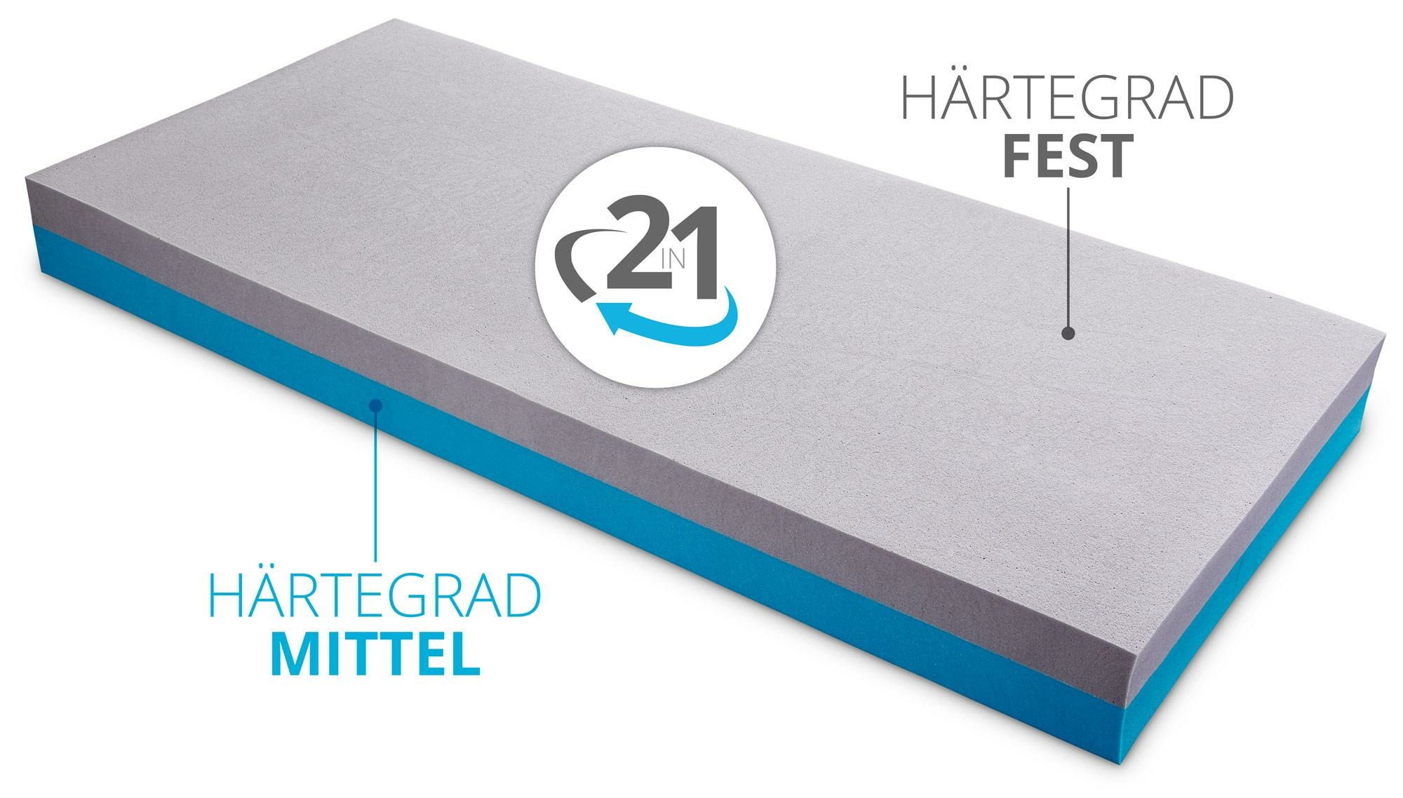 „Härtegrad 2 ist weich bis mittelhart und wird bis zu einem Körpergewicht von 80 kg empfohlen.“