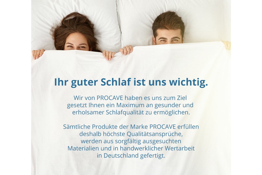 PROCAVE unterstützt Sie dabei mit hochwertigen Matratzen, Toppern und Bettwaren, die für bestmöglichen Komfort sorgen. So schaffen Sie die idealen Bedingungen für erholsame Nächte und starten erfrischt in jeden Tag.